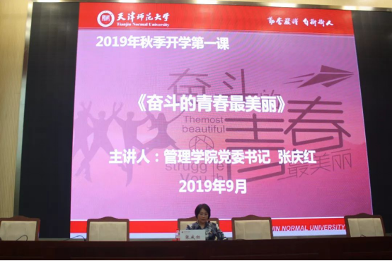 张庆红从习近平总书记同各界青年代表座谈时对青年的寄语展开,旁征博引、深入浅出地讲授国家对青年群体的期望、鼓舞和激励,并将讲政治、讲道理和讲故事有机结合起来,对广大新生寄语“三个做到”:要求广大青年在新时代做到珍惜青春、修德青春、奋斗青春。