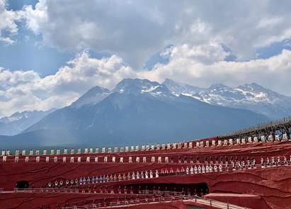 该图片拍摄于2019年4月8日云南省丽江市玉龙纳西族自治区,内容是印象•丽江表演的祈福仪式。站在巍峨的玉龙雪山面前,纳西族人民虔诚地祈愿,祝福来年风调雨顺、国泰民安。同时,他们也把祝福送给来自四面八方的朋友们,祝福大家身体健康、喜降福气、心愿达成。