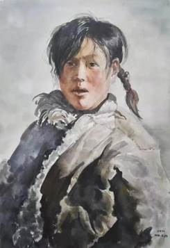《藏族姑娘》纸本水彩