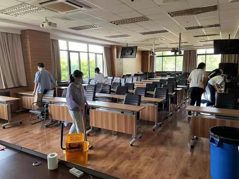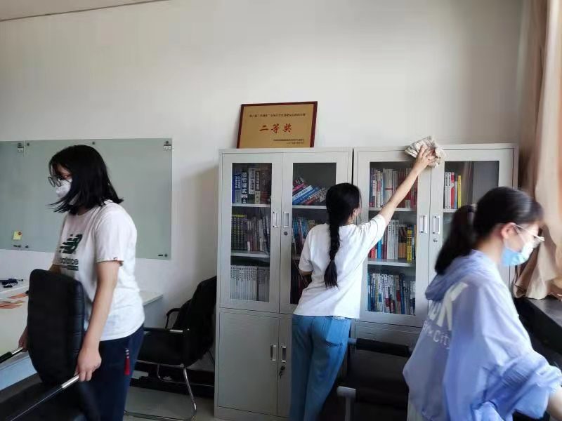 9月2日,为保持疫情防控常态化,持续加强校园消杀及卫生保洁力度,我院留宿学生党员志愿者和辅导员组成清洁消杀小队,分别对全学院30余间教室、办公室、阅览室、会议室、教职工休息室、教学楼楼道等一一进行了全面防疫消杀和卫生清扫,不留死角。在消杀清扫中,学生党员个个汗流浃背,人人争先恐后,不怕脏、不怕累,认真清理,劳动热情空前高涨。用汗水和力量为广大师生的健康安全辛勤付出,用自己的实际行动发扬了共产党员的优良作风,践行了共产党员的初心和使命,彰显了共产党员的乐于奉献崇高精神。