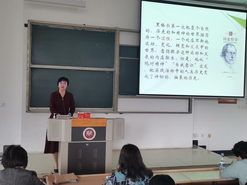 刘玉芝教授围绕“精准研判中国特色社会主义历史方位、理解历史方位的三个维度和将党的指导思想贯穿于新时代的伟大实践”三个方面,从辩证唯物主义和历史唯物主义的世界观、方法论的角度,寓理于事、析事明理,运用大量详实的史料深刻阐述了中国特色社会主义进入新时代是我国发展新的历史方位。她指出:研判中国特色社会主义历史方位需要我们深入学习党史,深刻领会把党的指导思想贯穿到我们工作的每一个具体实践中,明晰中国特色社会主义的发展阶段、发展特征,切实从党史学习教育中汲取力量,坚定信念,砥砺前行。