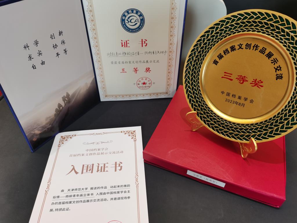 本次档案文创作品展示交流活动共有218组(队)报名,最后157组(队)提交了172个作品。通过专家评选并经组委会研究,确定了73组(队)的79个作品进入终审展示环节,最终有55组(队)73个作品参展。在为期三天的展示评比中,文创团队所设计的作品得到了与会专家的肯定,也收到了很多现场观众的掌声与赞赏。经过网络投票、专家投票、观众投票等环节,《动起来的雅韵俗情——杨柳青年画立体书》最终获得三等奖的好成绩。