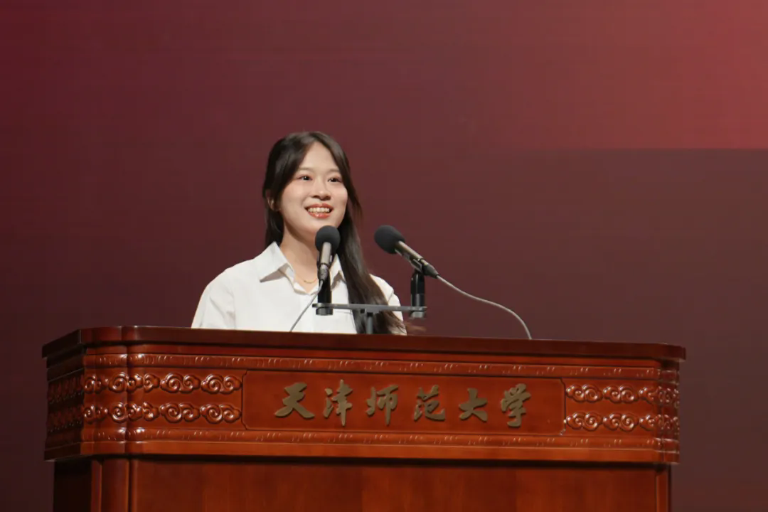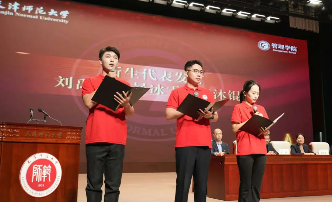 本科新生代表李沐锟讲述求学初心,立志以专业为基、在思辨实践中成长;硕士新生代表暴冰雪忆师大“重逢”,表达深耕专业的决心;博士新生代表刘禹宏承诺坚守学术底线、解决实际问题,把论文写在祖国大地上。三位代表的发言,分别展现了本、硕、博不同学段,新生的理想与担当。
